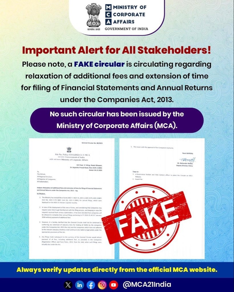 At the same time, the circulation of fake notifications highlights the importance of verifying regulatory updates from authentic sources only. In corporate compliance, misinformation can lead to penalties, notices, and avoidable litigation.